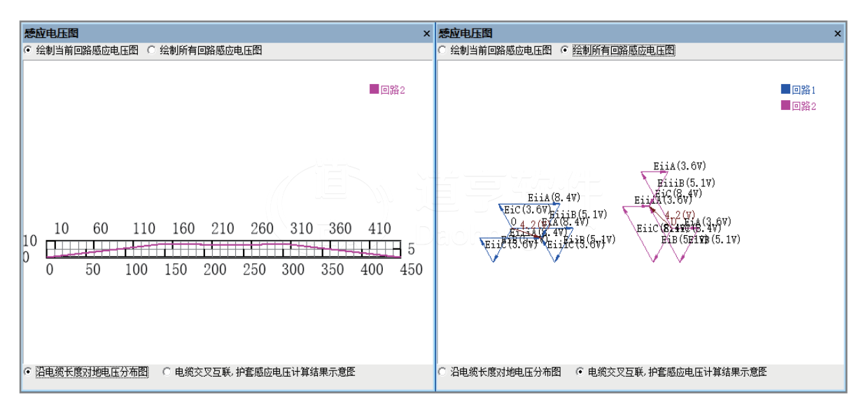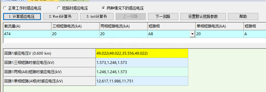 依据《高压电缆线路》和《高压电缆选用导则》(DL/T 401-2017),基于法拉第电磁感应原理,分别计算工频时的感应电压和不同相短路时的感应电压,同时支持添加回流线的感应电压计算。