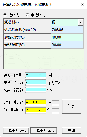 支持依据绝热法和非绝热法两种通用算法,分别计算指定截面的短路电流和短路电动力并输出计算书。